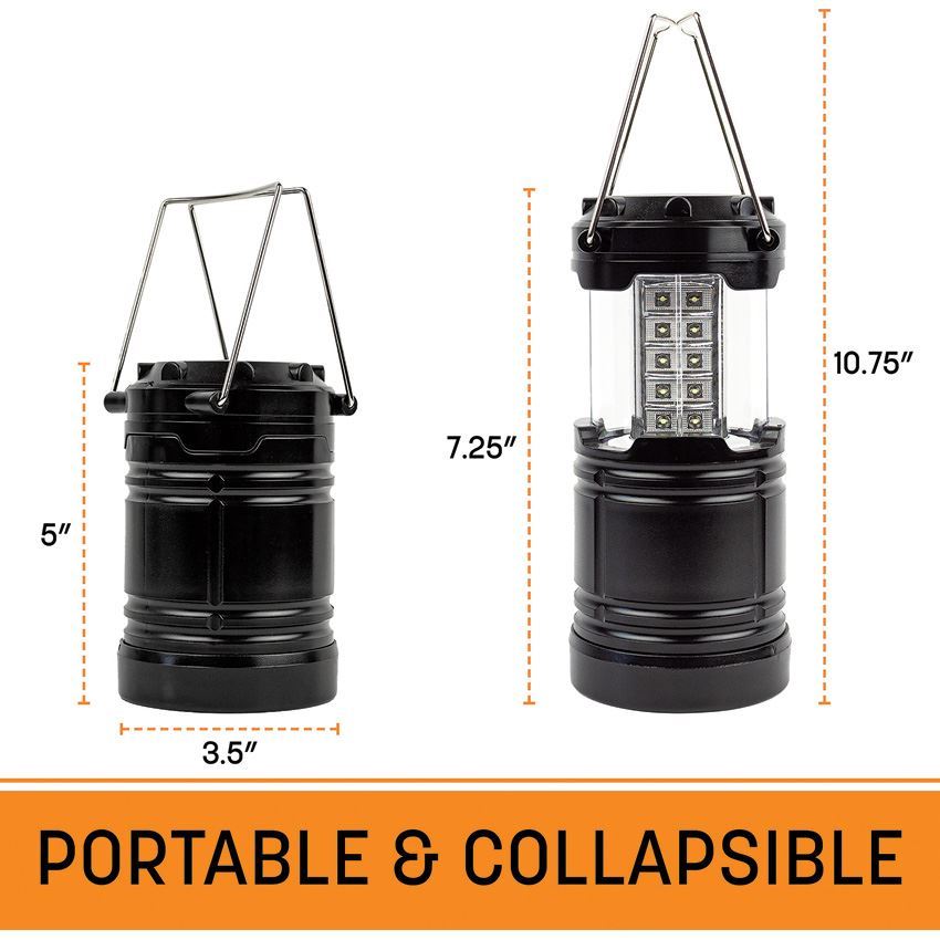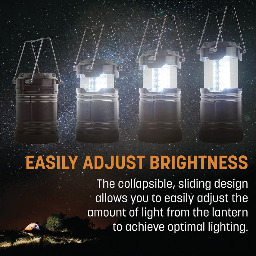 The Quick Survive portable lantern features a collapsible design that allows you to adjust the light output and size easily. Standing 10.75 inches when extended and compacting to 5 inches, it offers 360-degree illumination ideal for camping, hurricanes, power outages, and other emergencies. Its magnetic bottom ensures secure placement on metal surfaces, while the long-lasting battery provides up to 90 hours of reliable light. This lantern combines versatility and durability for expert-level preparedness in any situation.
